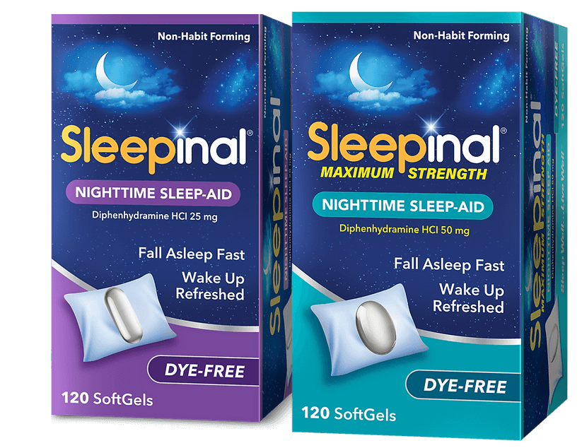 Available in 25 mg or 50 mg, Sleepinal non-habit-forming sleep aids help you fall asleep fast and wake up refreshed. Each SoftGel contains onlyDiphenhydramine, the #1 DOCTOR-RECOMMENDED OTC ingredient for a better night’s sleep.